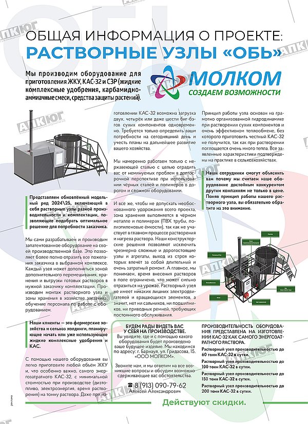 пищевое оборудование, растворные узлы для сельского хозяйства