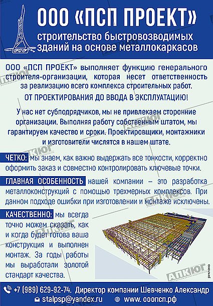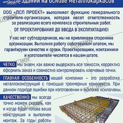 ООО «ПСП ПРОЕКТ» — ваш надежный партнер в создании современных, долговечных и экономичных решений для бизнеса и промышленности. Доверьте нам свой проект — и мы воплотим его в жизнь!