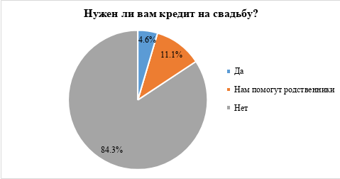 Свадьба – зачастую весьма затратное мероприятие, однако собственных средств на торжество хватает 84% россиян. Ещё 11% помогли родственники. Только 5% воспользовались банковскими займами.