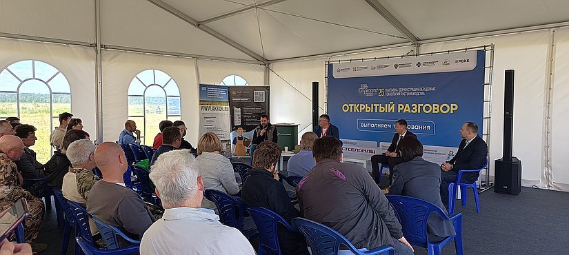 Заместитель директора Калужского регионального филиала Россельхозбанка Ольга Стрельникова на ежегодной выставке передовых технологий в сельском хозяйстве «День Калужского поля» представила платформу банка для кадров АПК «Я в Агро». Мероприятие состоялось в Перемышльском районе на площадке Калужского НИИСХ – филиала ФГБНУ «ФИЦ картофеля имени А. Г. Лорха». На открытии выставки выступили губернатор Владислав Шапша и председатель Комитета Совета Федерации Федерального Собрания Российской Федерации по бюджету и финансовым рынкам Анатолий Артамонов.