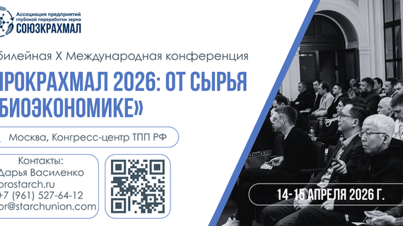 X Международная конференция «ПроКрахмал 2026: от сырья к биоэкономике» пройдет 14-15 апреля 2026 года